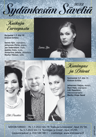 Sydänkesän Sävelet tulee jälleen! Kiskon kirkossa päästään pitkän tauon jälkeen nauttimaan korkeatasoisista konserteista. Klikkaa otsikosta lisätietoja! Pe 1.7. klo 19 estraadille astuu Oopperan kummitussessakin lumonnut Sanna Iljin, sopraano ja piano sekä Johannes Piirto, Jan Söderblom, Jaakko Ilves, Annariina Jokela ja Marko Ylönen.